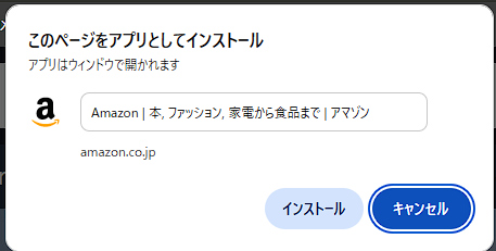 アプリ化に対応しているサイトは、アドレスバーの右端にアイコンが表示されるので、それをクリックすれば簡単にインストールできます。