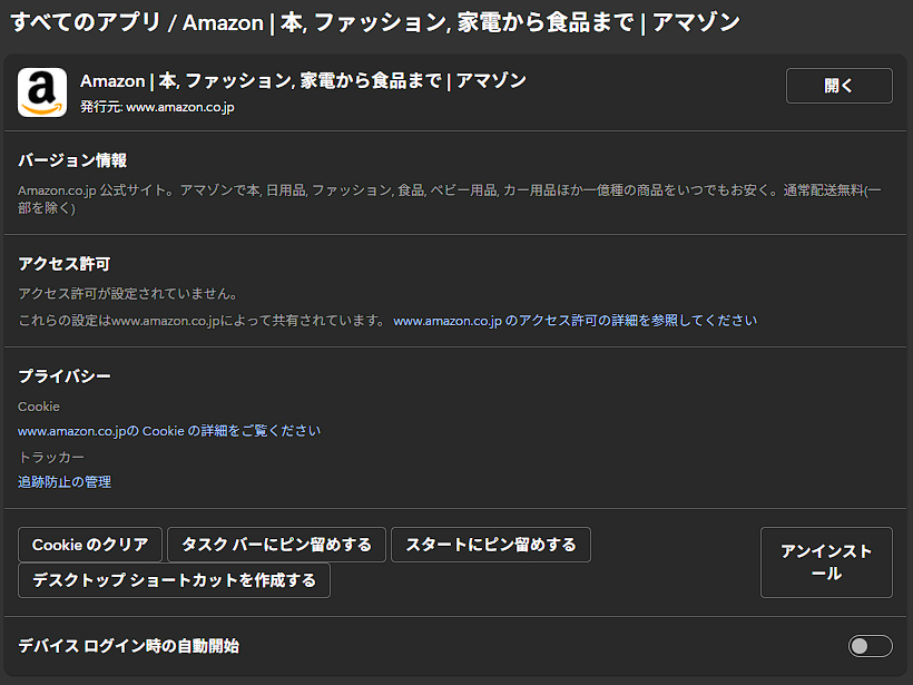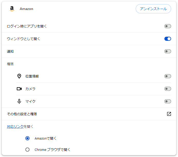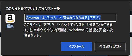 Chromeと違うのは、アプリのショートカットをどこに置くか(タスクバーなど)もここで変更できることですね。
