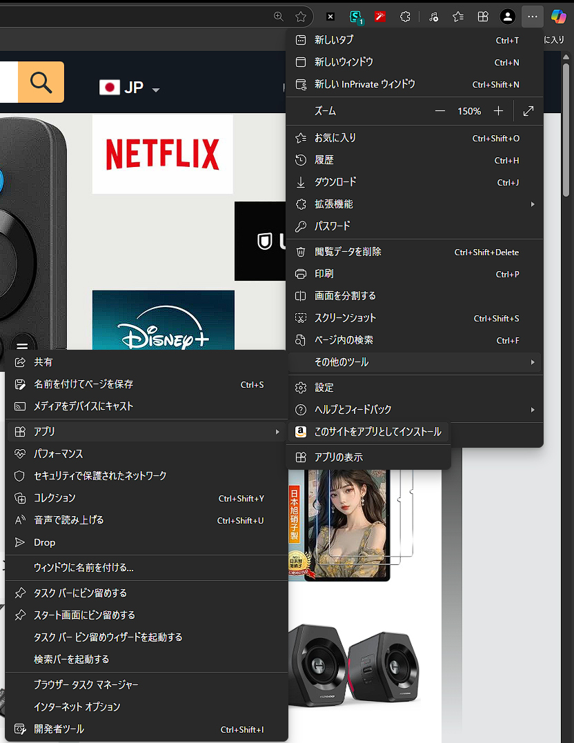 だからこれまではFireFoxをPrimeビデオ専用ブラウザとして使っていたのですが、ページをPWA化できることを知り、今はEdgeのPrimeビデオページをPWA化して使っています。