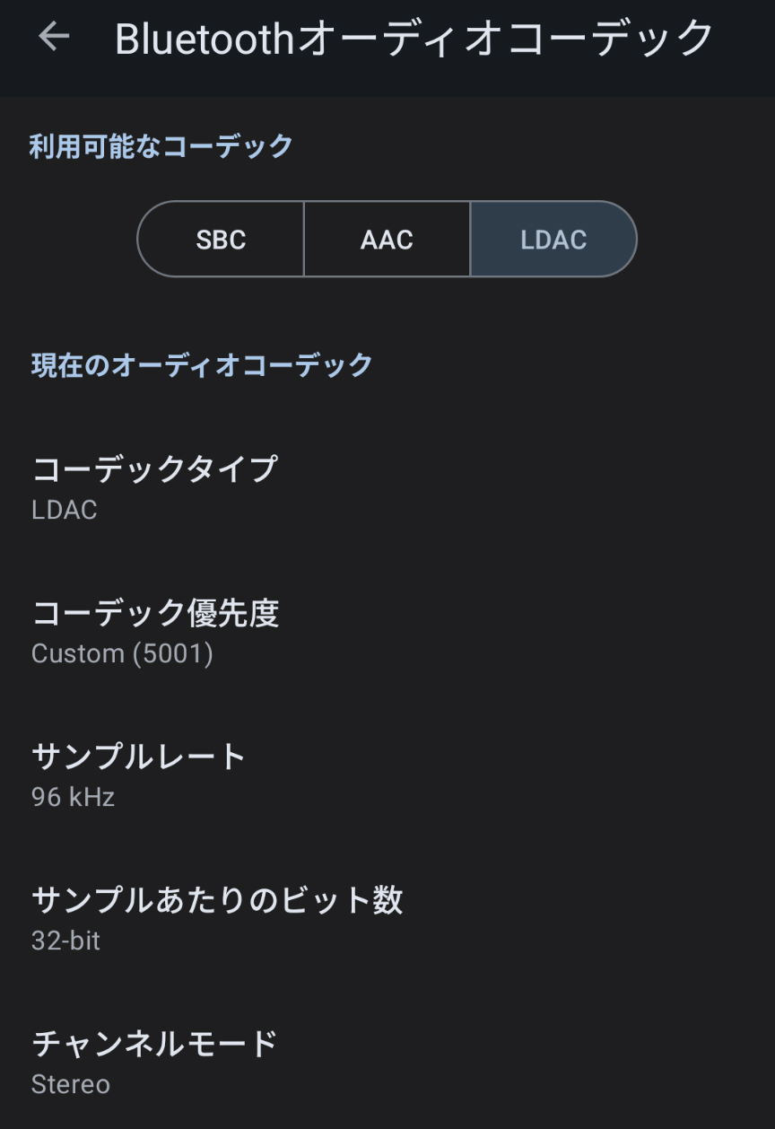 私的には普通にAAC対応だけで良かったのですが、一応LDACも対応してるので高価なスピーカーシステムでもちゃんと高音質で聞けると思います。